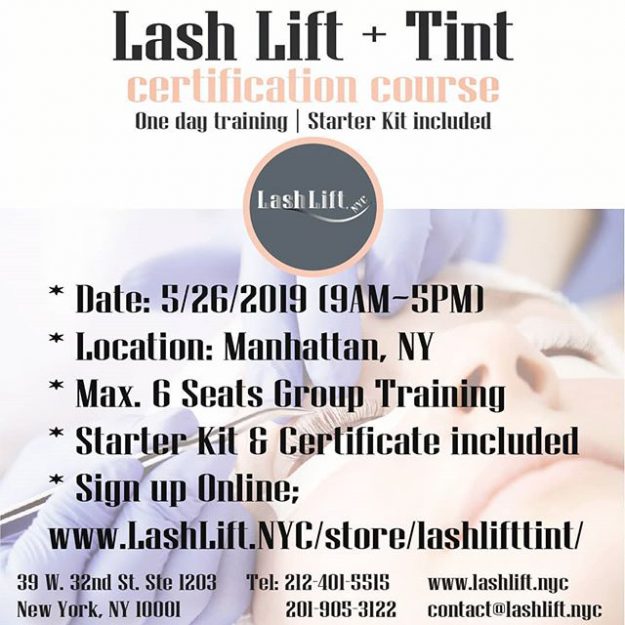 Lash Lift +Tint Training Certificate Course NoticeBy AdminMay 4, 2019Lash Lift & Tint certification course by LashLift NYC is available now!